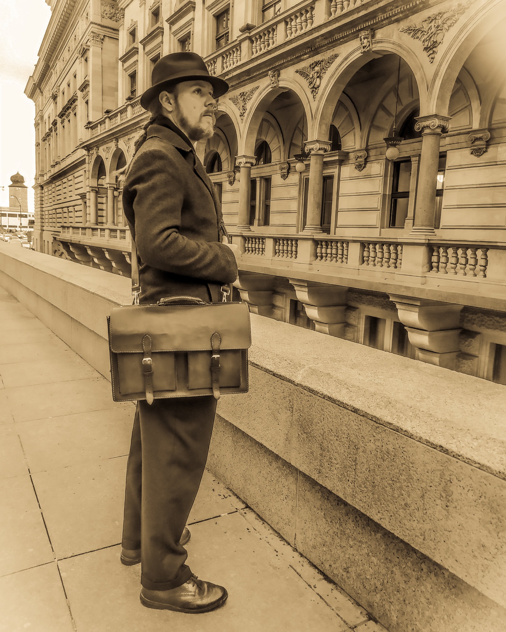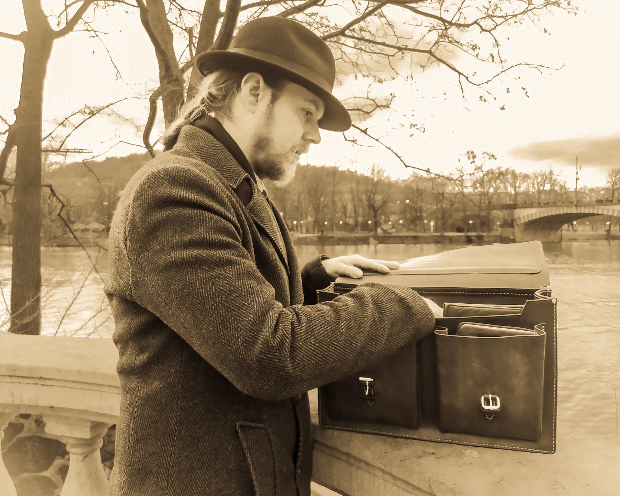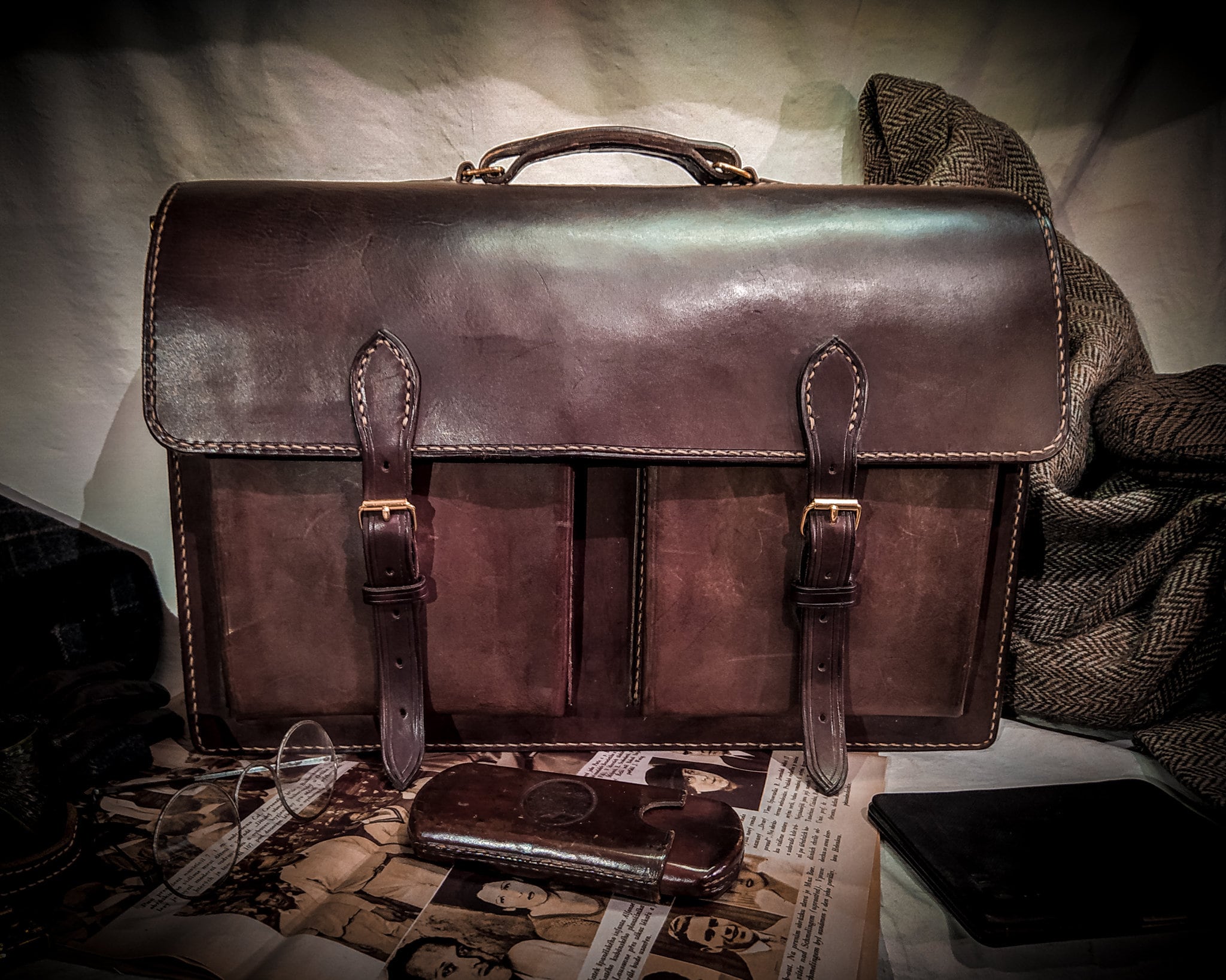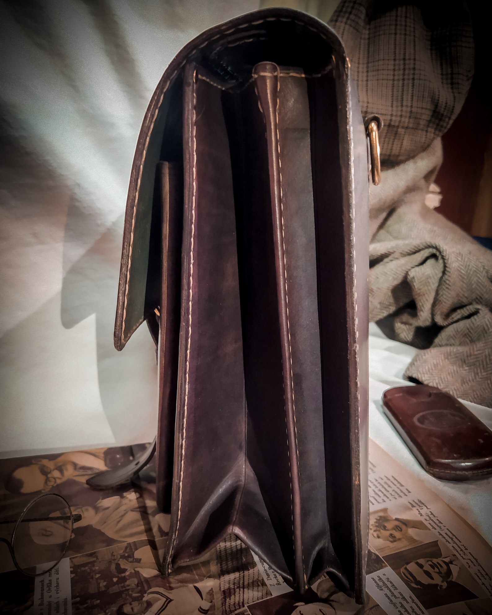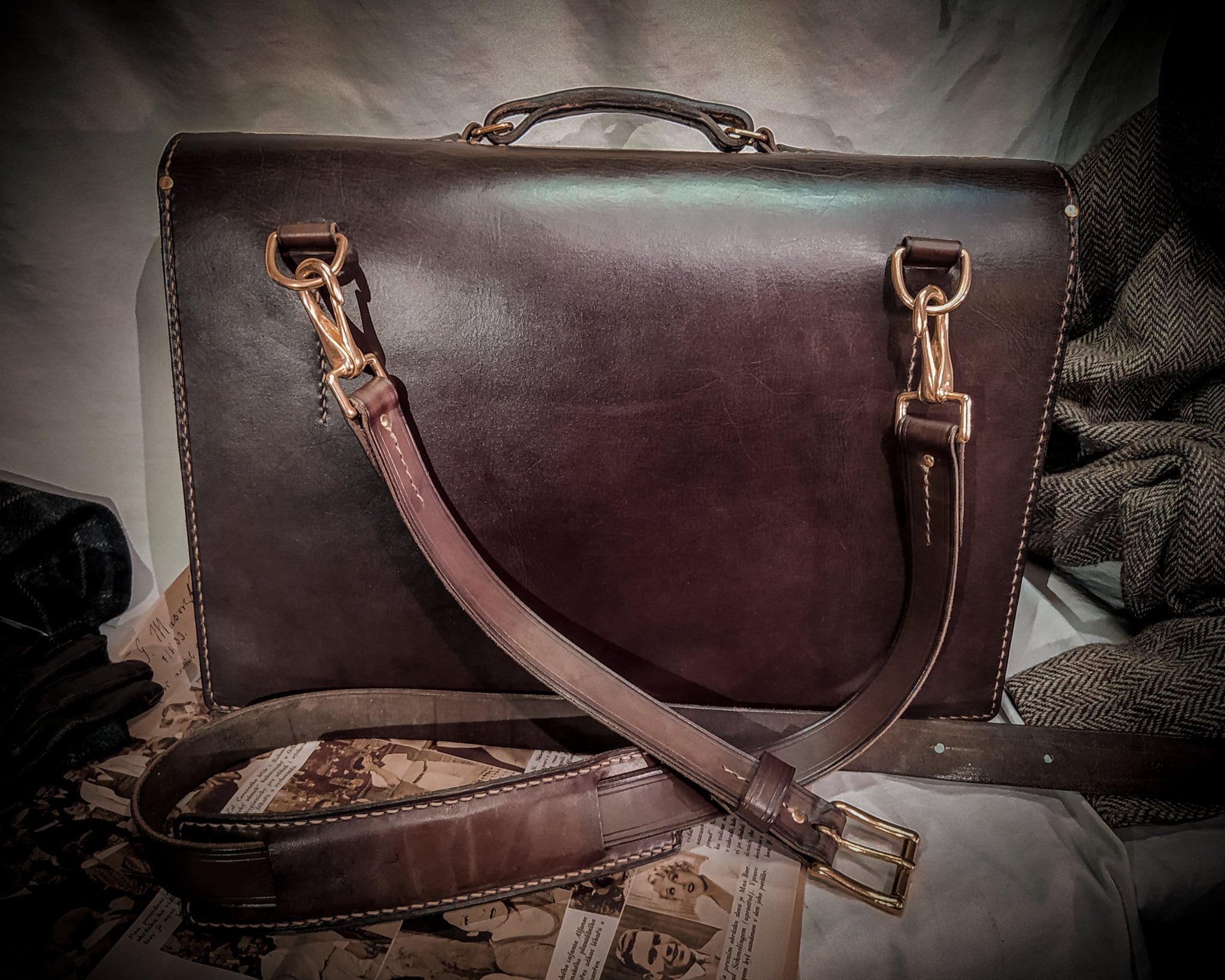 Messenger, you could wear it with your vintage outfit. The 1920s, 30s 40s were the era of handbags and it was not common to wear your bag across the body like those days. I have to search for some military, post, etc. equipment that looks good and transform the design a little bit, add some pockets but I think the genuine vintage feeling was not washed away.
